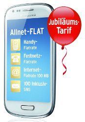 Nur noch am heutigen 19. Oktober 2014 stellt Tchibo mobil einen „Jubiläums-Tarif“ in limitierter Auflage bereit. Die All-Net-Flat des Mobilfunk-Discounter kostet dauerhaft zehn Euro im Monat und hat keine Vertragslaufzeit.Der „Jubiläums-Tarif“ von Tchibo mobil enthält eben einer All-Net-Flat für Standard-Telefonate innerhalb Deutschlands monatlich 100 SMS in alle deutschen Netze inklusive. Jede weitere SMS wird von Tchibo mobil mit neun Cent berechnet.