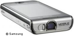 Auch in Europa dürfte man auf das Projektor-Handy des koreanischen Herstellers nicht allzu lange warten müssen. Das Handy, das mit einem Mini-Projektor von Texas Instruments ausgestattet ist und so Bildschirminhalte auf externe Flächen projizieren kann, wird hierzulande unter der Bezeichnung Samsung i7410 vermarktet werden.