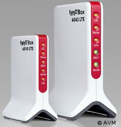 AVM hat die FRITZ! Box 6842 LTE mit WLAN im n-Standard, vier Ethernet-Anschlüssen, einem USB-Anschluss und einer analogen Schnittstelle ausgestattet. Für Einsteiger gedacht ist die FRITZ!Box 6810 LTE, die WLAN-n sowie LAN-Anschluss bietet. Beide Router erlauben das Telefonieren per LTE über integriertes DECT für bis zu sechs Schnurlostelefone.