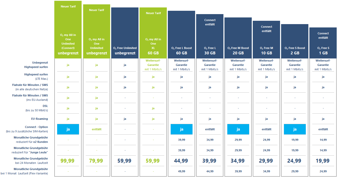Tarifdetails der neuen o2 Tarife "All in one"