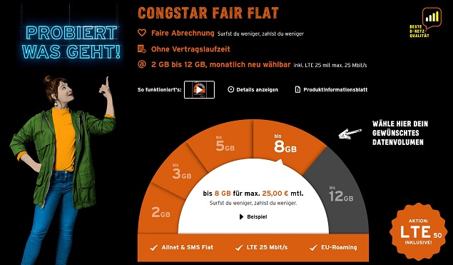 Neu: congstar Fair Flat ab sofort mit fünf Datenstufen und inkl. LTE 50
