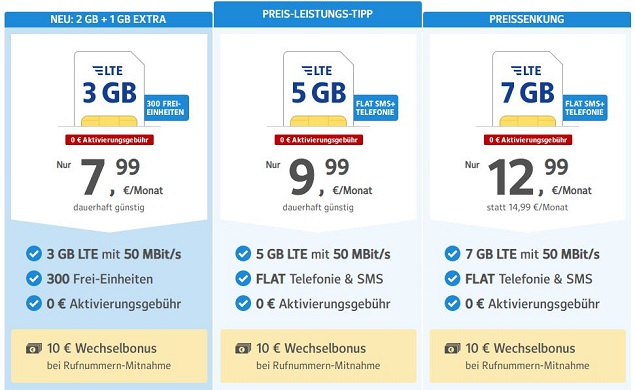 All-Net Flat 3 GB: 3 GB, All-Net Flat, 12,99 €