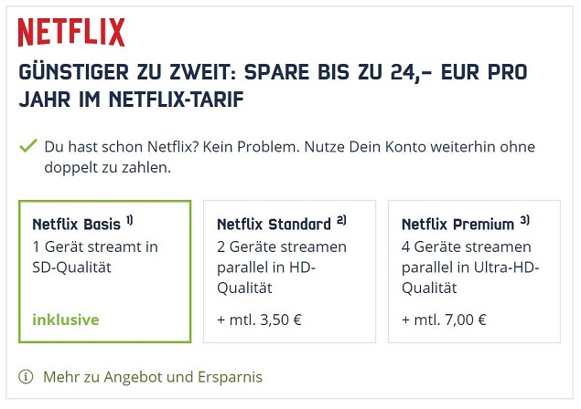 Hierzu ein kleiner Preisvergleich eines Handytarifs mit und ohne Netflix: