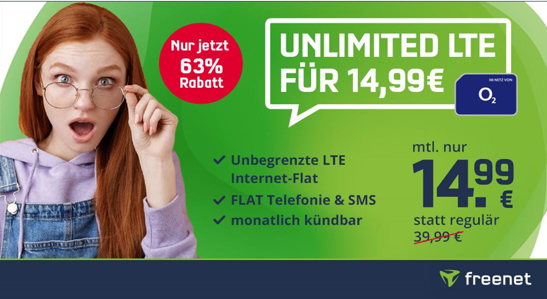 freenet: o2 Free Unlimited Smart für nur 14,99€ im Überblick
