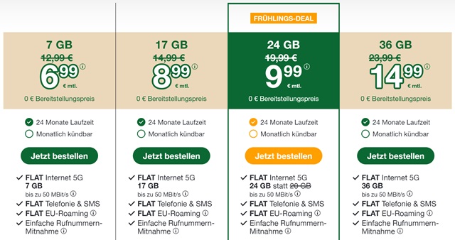 Tipp: Alle aktuellen Mobilfunk-Tarife mit Rabatt- und Preisaktionen vergleichen Sie am schnellsten und einfachsten mit unserem Handy-Tarifrechner.