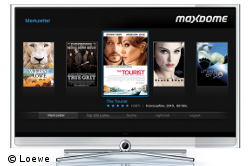 Im Auswahlmenü des Loewe-Internet-Portals MediaNet stellt die Applikation maxdome eine direkte Internetverbindung zur Online-Videothek her. Nach einer kostenlosen Registrierung erhält der Nutzer unmittelbaren Zugriff auf die verschiedenen maxdome-Angebote. Alternativ kann er entweder einen Titel über die integrierte Suche finden oder sich den Titel im Webshop aussuchen, ihn auf den Merkzettel setzen und ihn später auf dem TV-Gerät direkt abrufen.