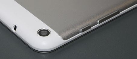 Rechts oben: Powerknopf, Lautstärkewippe sowie 3,5 mm Klinkenbuchse und 5 MP-Kamera