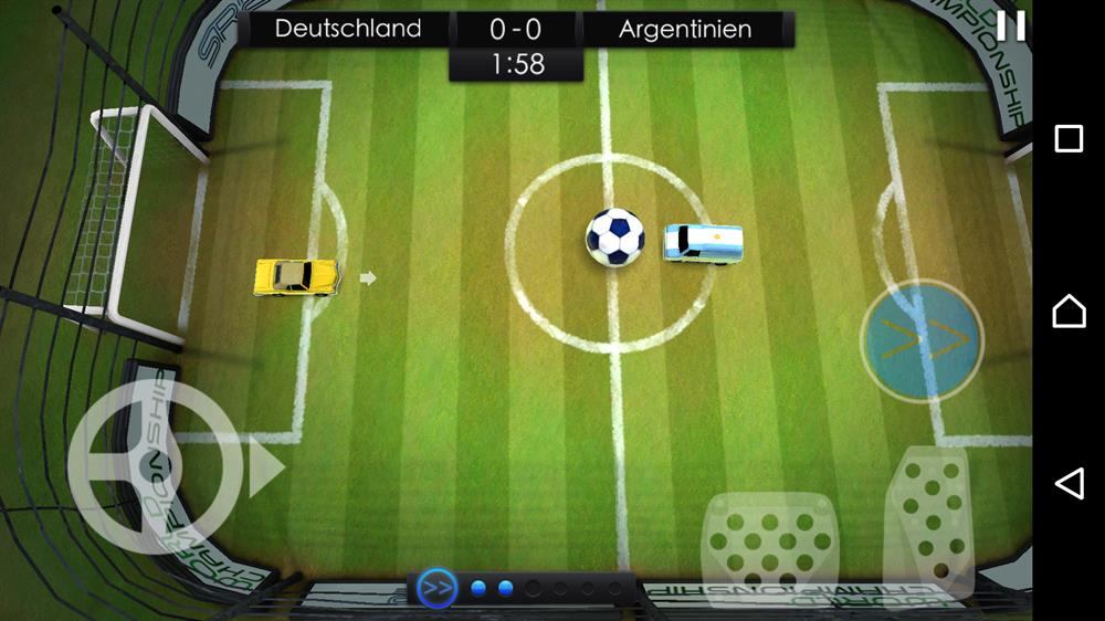 zurück zum BeitragManchmal erscheinen die Duell nicht ganz fair, wenn wie hier z.B. eine Limousine gegen einen VW Bus antritt. Kleine, wendige Autos sind bei Soccer Rally 2 jedoch vor allem für Anfänger interessant, weil sie sich leichter steuern lassen.
