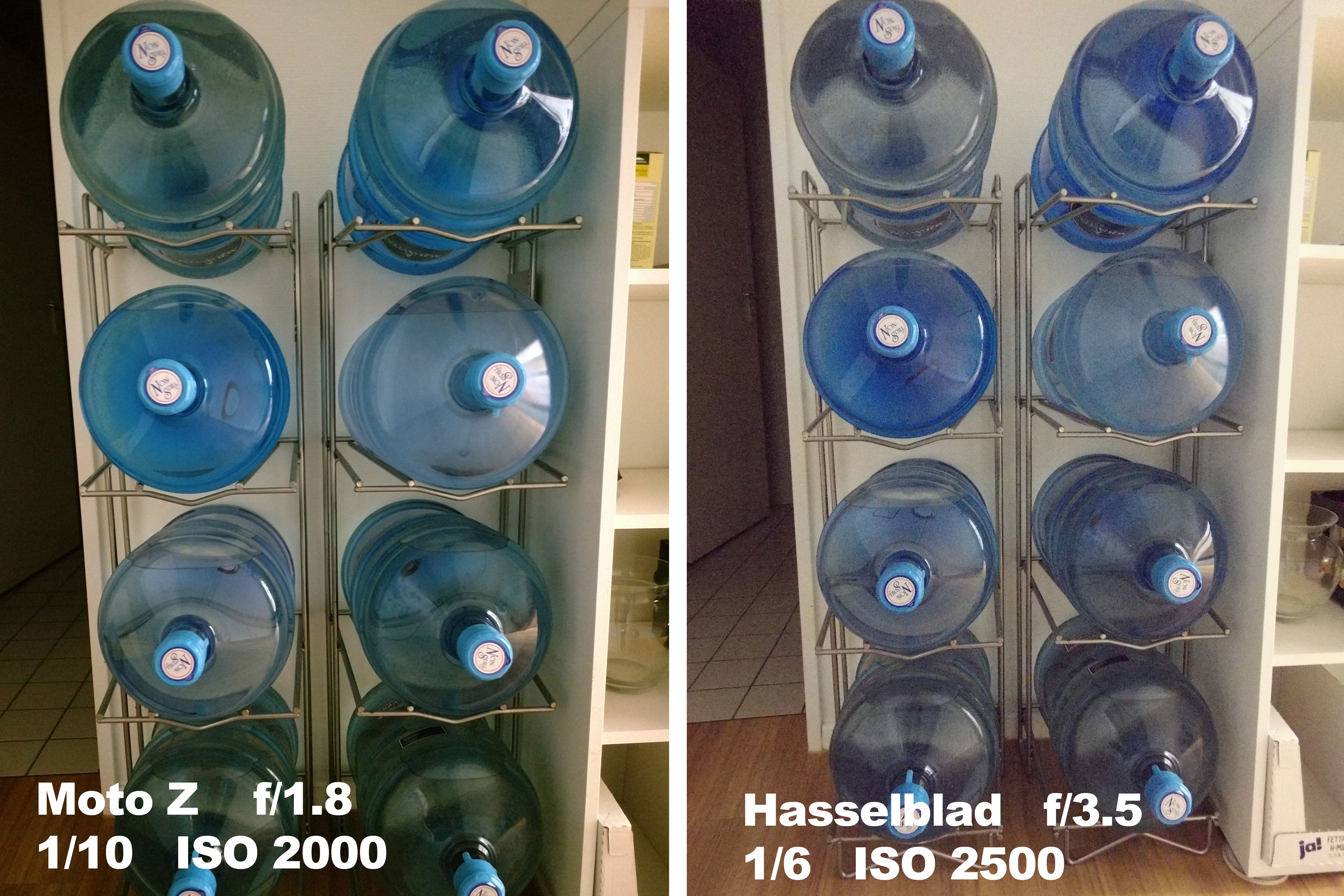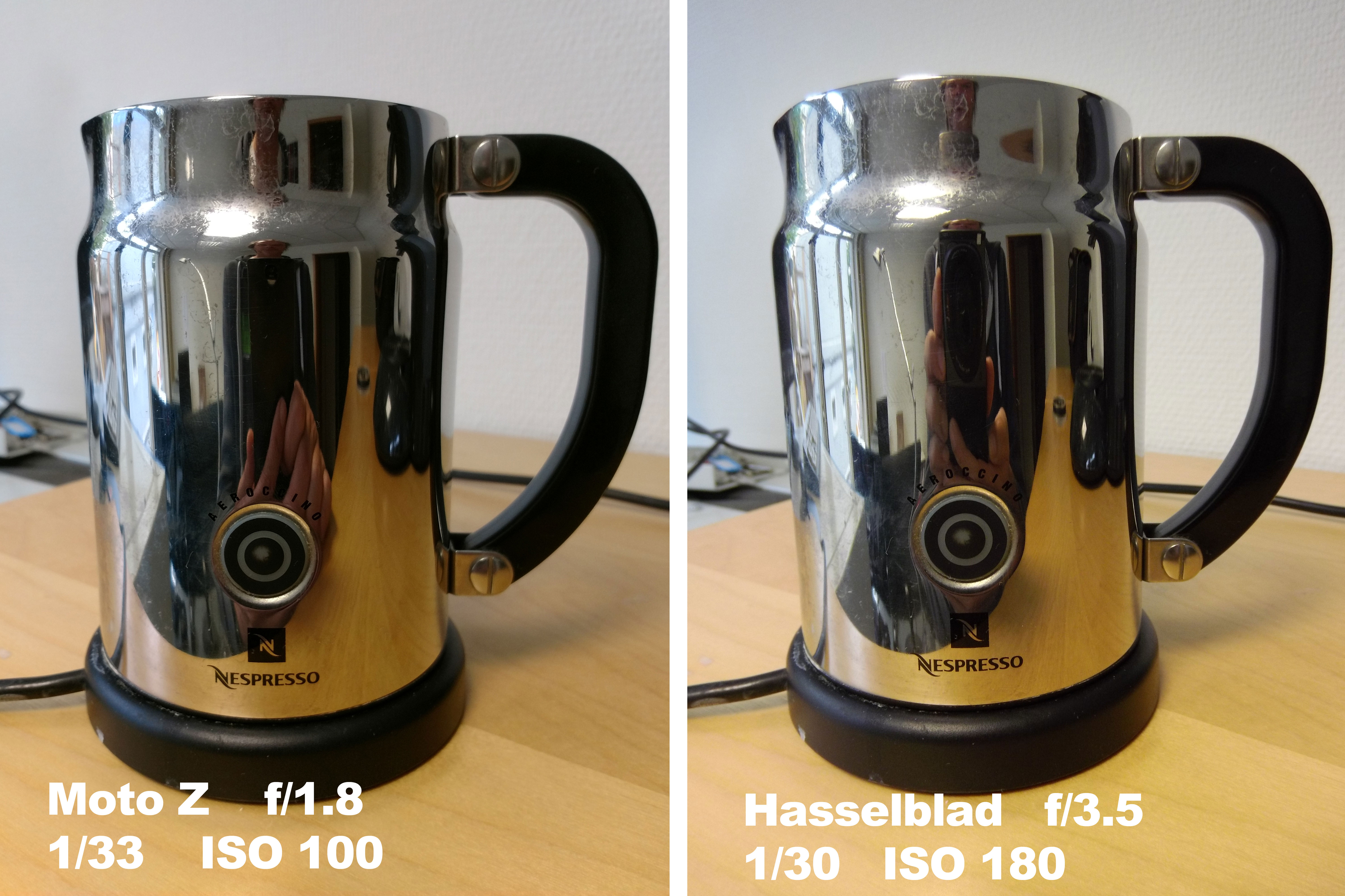 Bei LowLight (siehe Bild 2) ist das Moto Z dank der Offenblende von f/1.8 sogar im Vorteil. Die Aufnahme der Hasselblad rauscht dagegen schon heftig, da hier bei einer Blende von 3.5 bereits ISO 2.500 genutzt werden musste.