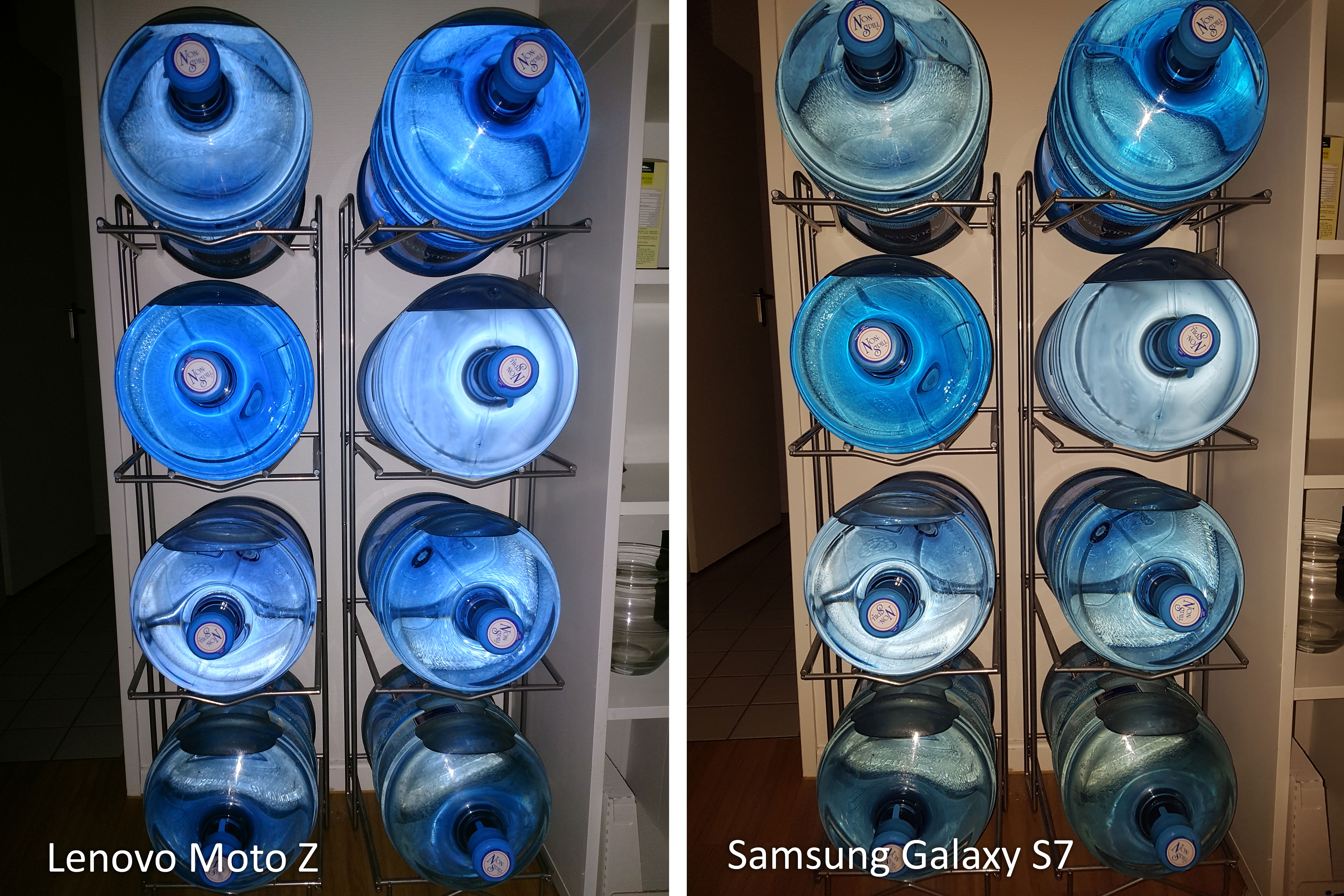 Unterschiede gibt es lediglich bei der Farbtemperatur - mal neigt das S7 zu Gelbstich (Bild 3), mal neigt das Moto Z zum Gelbstich (Bild 6). Bei Bild 6 hat das Moto Z es etwas zu gut gemeint und die Box des JBL-Soundmoduls etwas zu rötlich dargestellt.